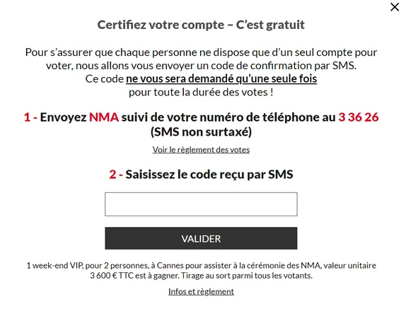 Dans un article expliquant comment voter, il est aussi spécifié que « LE VOTE EST GRATUIT ». Aussi, dans le règlement officiel, déposé auprès d'un huissier de justice, la mention a été modifiée : « Afin de pouvoir finaliser la création de leur compte et de le faire certifier, les internautes devront préalablement obtenir GRATUITEMENT par SMS, un code d'identification, valable pour toute la période de vote (jusqu'au 18 novembre 2022), et qui leur permettra de voter une fois par jour et par catégorie ». Tout est bien qui finit bien !