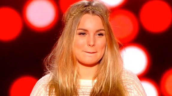 Au tour de Carole-Anne de défendre sa place dans "The Voice", et elle nous vient du Québec ! Etonnant : sa passion lui est venue après avoir fait des imitations de... Shakira ! Déterminée et positive, la chanteuse de 23 ans arrive sur scène pour interpréter "Chandelier" de Sia, avec délicatesse, des effets dans les aigus et un refrain maitrisé. Florent Pagny se retourne illico... et à une seconde de la fin de la prestation, Mika appuie sur le buzzeur. Jenifer voulait plus « d'écorchure » et Carole-Anne assure avoir voulu mettre ses tripes sur la table... ce qui dégoûte Mika. « C'est dégueulasse ! » lâche-t-il. Après une bataille entre les deux coachs masculins pour la convaincre, la demoiselle mise sur Florent Pagny. « Elle a choisi la mauvaise chanson... et le mauvais coach » réplique Mika.