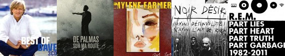 Un large choix est également disponible du côté des best-of. Vous pourrez ainsi reprendre la "route" avec De Palmas. Sorti le 7 novembre, il contient des titres comme "J'en rêve encore" mais surtout un inédit : "L'étranger". Dave, parallèlement à son album de reprises soul "Blue-Eyed Soul!", partage ses tubes avec un "Triple best Of", paru le 14 novembre. Du côté de la gente féminine, Mylène Farmer nous offre également un aperçu de sa carrière avec la sortie du "Best Of 2001 2011", incluant quelques singles inédits, comme le morceau "Du temps". Les groupes de rock n'ont pas non plus lésiné pour Noël, puisque vous pourrez vous procurer le très attendu "Soyons désinvoltes n'ayons l'air de rien" de Noir Désir, paru en début de semaine. Le groupe R.E.M., qui a annoncé sa séparation, sort un best-of et récapitule une grande carrière.