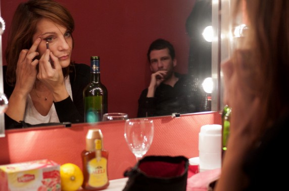 06/10. « Namur, première date de la tournée. Une trentaine de minutes avant de monter sur scène. Je regarde souvent Valentine (ma violoncelliste) se maquiller, ça me détend de lui dire des horreurs avant d'affronter le public. Elle est suffisamment bonne camarade pour comprendre que c'est un mal nécessaire. Elle se venge généralement quelques minutes avant le concert, en faisant l'andouille derrière le rideau, alors qu'elle sait très bien que je déteste ça, que je voudrais qu'on soit tous concentrés et conscients de l'ampleur de l'enjeu et de l'importance du moment. Ce qui, soyons francs, n'arrive jamais. »