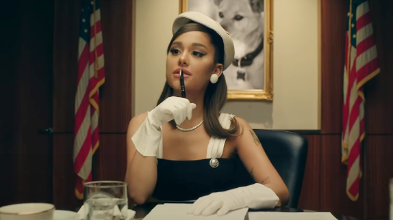 Le thème de "Positions" ? L'amour, bien sûr. Petite amie dévouée, Ariana Grande se tient prête à « faire la cuisine » et « être dans la chambre » pour assouvir les moindres désirs de son bien-aimé, comme elle le chante. Une vision peu féministe ? Pas vraiment, car le clip de "Positions" apporte un twist à cette déclaration enflammée : la popstar s'y imagine en présidente des Etats-Unis ! A la Maison-Blanche, où ce sont les femmes qui détiennent le pouvoir et prennent les décisions cruciales pour l'avenir du pays, Ariana Grande s'affirme dans toute sa puissance et sa féminité, incarnant sa meilleure Jackie Kennedy dans un univers alternatif où c'est elle qui siégerait dans le bureau ovale. Who run the world ? Girls !