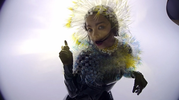 Étrange le clip de "Lionsong" ? Pas vraiment quand on connait Björk ! Cette nouvelle vidéo énigmatique à l'esthétique léchée montre la musicienne vêtue d'une combinaison en latex noir et de plumes de paon, évoluant dans une matrice, en apesanteur. La chanteuse islandaise a fait confiance à Inez & Vinoodh, un couple d'artistes néerlandais avec qui elle travaille depuis les années 80. Dans le clip qui s'ouvre sur un coeur battant, ils ont voulu représenter la chanteuse « calme et tranquille comme une araignée attendant sa proie sur sa toile, magnétique comme une statue de danseuse balinaise, mettant son coeur à nu et nous engloutissant dans sa galaxie. » Tout un programme...