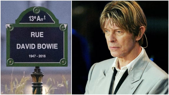En France aussi, un hommage vient d'être rendu au chanteur. Ce lundi 8 décembre, jour de ce qui aurait été son 77ème anniversaire, une rue David Bowie a été inaugurée à Paris. Celle-ci se situe dans le 13ème arrondissement, entre la rue Gisèle Frund et l'avenue Pierre Mendes-France, jouxtant les locaux de la rédaction du Groupe Le Monde. Et à quelques centaines de mètres de Bercy, salle où David Bowie s'est produit à cinq reprises entre 1990 et 2003 ! La cérémonie d'inauguration de cette rue a donc eu lieu ce lundi aux côtés de proches de l'artistes, dont la styliste Agnès B., qui l'a habillé « pendant 25 ans », l'ancienne ministre de la Culture Aurélie Filippetti ou encore le journaliste et biographe Jérôme Soligny, ami de l'interprète de "Space Oddity". Ce dernier a d'ailleurs expliqué que la famille de David Bowie était retenue à New York et n'a pas pu assister à l'événement.