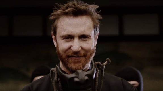 Etonnamment, le clip de "Flames" est bien loin de l'imagerie funky et 70's auquel le titre se réfère. David Guetta a choisi comme principale source d'inspiration le diptyque "Kill Bill" de Quentin Tarentino. Si le DJ français n'inclut pas la violence graphique excessive et typique de Tarantino, il en reprend l'imagerie. La chanteuse de "Chandelier" n'apparaît pas dans le clip mais Guetta revêt l'apparence d'un diabolique maître samouraï. Face à lui, trois jeunes filles longuement entraînées par un maître joué par... Danny Trejo, qui viennent se venger de sa mort. L'acteur est surtout connu pour ses rôles dans les films de Robert Rodriguez, comparse de Tarantino.