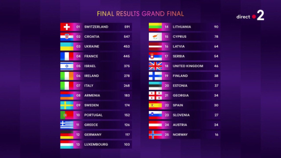 1. Suisse (Nemo - "The Code") : 591 points
