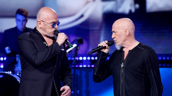 Alors qu'il lutte contre un cancer des poumons depuis plusieurs mois, le coach de "The Voice" s'est mobilisé « pour la bonne cause » à l'invitation de France Télévisions. « Nous on est des messagers, et avec ce qu'il se passe, on envoie des messages d'amour, des messages d'espoir et des messages de paix. C'est notre vocation » a confié le chanteur, qui apparaissait le crâne rasé pour la première fois en public : « Quand j'ai reçu ce message pour demander si je serais assez en forme pour venir soutenir l'Ukraine, attirer un peu l'attention pour appeler aux dons... Ben oui, oui je serai là. Je peux encore chanter ». Avec son ami depuis 30 ans, Pascal Obispo, Florent Pagny a donc choisi d'interpréter cette chanson qu'ils ont confectionnée ensemble pour l'album "Châtelet les Halles" en 2000, et dans laquelle il raconte la peur et les angoisses d'un soldat envoyé sur le front. « Quand ça arrive / Quand on y est / Alors on sait / Y'a pas un homme qui soit né pour ça / Y'a pas un homme qui soit né pour ça » ont chanté les deux artistes, le visage grave, devant des images de femmes et d'enfants touchés par la guerre. Un moment fort.