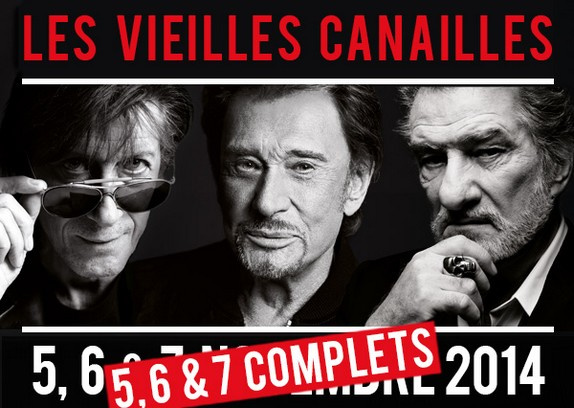 Carton plein pour Les Vieilles Canailles ! Ouverte ce matin, la billetterie pour les trois concerts de Johnny Hallyday, Jacques Dutronc et Eddy Mitchell au Palais Omnisports de Paris-Bercy est déjà sold out. Il n'a fallu que quelques minutes au trio pour écouler les 30.000 billets mis en vente. Un joli succès, et ce en dépit des tarifs élevés qui ont d'ailleurs fait l'objet de vives critiques sur la toile. Valéry Zeitoun, à l'origine du projet et également co-producteur, s'est d'ailleurs exprimé sur le sujet dans Le Parisien, justifiant des places à plus de 240 euros par « une réalité économique ». Pas refroidis, les plus fervents admirateurs des trois chanteurs ont répondu présents ce matin. Et ils seront sans doute aussi au nouveau rendez-vous fixé cet après-midi. Deux nouvelles dates viennent effectivement d'être annoncées. Initialement, Les Vieilles Canailles devaient se produire au Palais Omnisports de Paris-Bercy les 5, 6 et 7 novembre prochains. Ils joueront aussi dans la grande salle les 8 et 9 novembre. Les places sont d'ores et déjà disponibles.