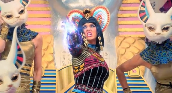 Numéro un au Billboard Hot 100 durant quatre semaines, le titre, enregistré avec Juicy J, vient d'avoir droit à un clip grandiloquent, qui a emmené le public en Egypte, à l'époque de Cléopâtre. Justement, Katy Perry a endossé le rôle de la reine d'Égypte antique, baptisée Katy Paträ pour l'occasion. La chanteuse de 29 ans s'en est donnée à coeur joie, jouant les divas, au milieu de décors bling-bling et colorés, et de gardes bodybuildés. Mais, justement, l'un des premiers prétendants de Katy Perry dans le clip porte une chaîne autour du cou, arborant un bijou sur lequel est inscrit le nom d'Allah, le Dieu de la religion musulmane, en arabe. Mais, comme tous les protagonistes, l'homme va subir les foudres de la reine et finir en cendres...