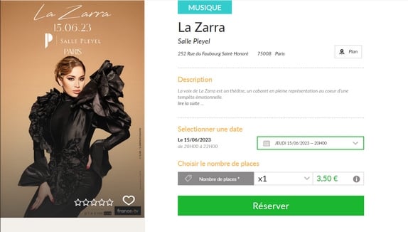 Des réductions à -30% ont été réalisées ces dernières semaines pour essayer de vendre les places restantes. Sur Ticketmaster, d'autres promotions sont réalisées avec des places désormais vendues entre 24 et 26 euros, au lieu de 39 à 59 euros. Mais il y a pire ! Comme l'ont repéré certains internautes, le site de la billetterie Weclap, qui propose des prix spéciaux pour ses abonnés, vend des billets pour le concert de La Zarra à Paris. Et ceux-ci sont proposés à... 3,50 euros ! Voire même moins ? En essayant de commander une place, on peut se rendre compte que celle-ci est même, en un sens, gratuite puisque les 3,50 euros à payer sont uniquement des « frais de services ».