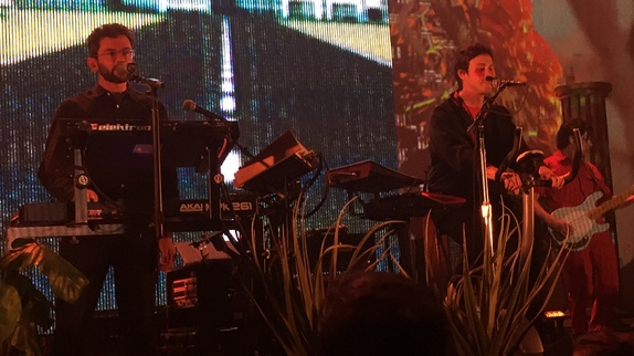 Le show commence dans une pénombre cinématographique. La silhouette flippante du dernier disque "Little Dark Age" prend vie sous la forme d'une poupée gonflable tandis que le claviériste introduit le show sous la forme d'une musique au clavecin. La chanson-titre est lancée mais est malheureusement gâchée par un son quelque peu brouillon (avec la voix d'Andrew assez en retrait). Celui-ci s'améliorera au fil de la soirée notamment sur un "When You Die" qui fait chavirer la foule. Fort heureusement, la setlist de ce soir va privilégier cet excellent dernier album ainsi que les hymnes du tout premier. Les deux autres albums seront boudés, à l'exception d'un titre phare en fin de set. Au bout de dix minutes, le duo envoie un "Time to Pretend" à tomber qui transforme la fosse en dancefloor. La boule à facettes au plafond y est pour beaucoup ! Si le groupe n'est pas très loquace et mobile, il a avec lui un atout de taille : un fond marqué par des superbes projections psychédéliques : un cerf parcourant un circuit façon Mario Kart, un iPhone factice filmant en direct, des gravures médiévales prenant vie...