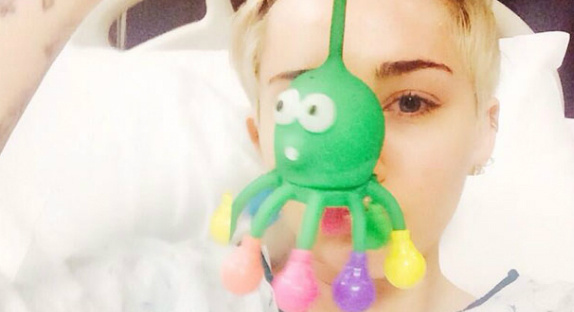 Cette fois-ci, c'est une hospitalisation d'urgence qui a provoqué l'annulation d'une date prévue hier soir à Kansas City. « Émotionnellement et physiquement épuisée » il y a quelques jours, comme elle le confiait sur Twitter, la chanteuse s'est vue prescrire une série d'antibiotiques pour tenir le coup et assurer la suite de sa tournée. Hélas, Miley Cyrus a fait une sévère réaction allergique aux médicaments... et a du passer la nuit à l'hôpital. Dans un message, la star s'est excusée auprès de ses fans, déçus de ne pas pouvoir admirer ses talents de show-girl. « Kansas je vous promets que je suis aussi navrée que vous. J’aurais adoré être là ce soir. Ne pas être avec vous me fait sentir encore plus mal que je ne le suis déjà » a-t-elle tweeté, avant de poster une photo d'elle, en blouse blanche et accompagnée d'un poulpe en peluche : « M. Calamar et les docteurs prennent bien soin de moi ». A mesure que les déconvenues s'enchaînent pour la popstar, les fans s'inquiètent : sera-t-elle en mesure d'assurer la totalité de son "Bangerz Tour" sur les routes du monde entier ? Pour le moment, aucune autre date de concert n'a été reportée.