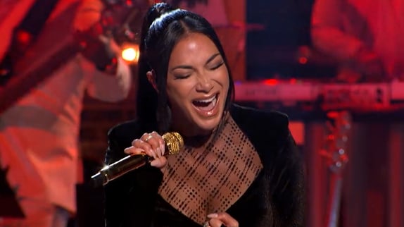 Pour cette première de 2023, Jimmy Fallon a fait venir dans "That's My Jam" quatre figures de la musique contemporaine. Jason Derulo (le roi de TikTok) s'est associé à Nicole Scherzinger pour faire face à la sensation country pop Kelsea Ballerini et Julia Michaels, à qui l'on doit, comme autrice, les tubes "Sorry" de Justin Bieber ou "Lose You to Love Me" de Selena Gomez. Le principe ? S'affronter dans plusieurs épreuves musicales dont le fameux "Wheel of Musical Impressions". En actionnant un levier pour déclencher une roue du hasard, Nicole Scherzinger a eu pour défi de reprendre "My Heart Will Go On" de Céline Dion, chanson mythique du film "Titanic" que la diva déteste, à la façon de... Led Zeppelin. Personne n'aurait pu imaginer ce qui allait suivre !