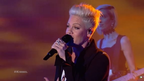 Pink chante "Hustle" en live chez Jimmy Kimmel :