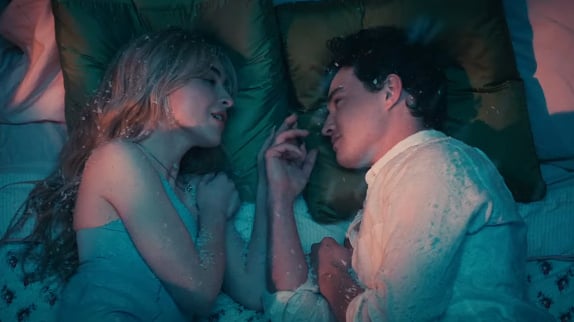 Alors qu'Olivia Rodrigo chantait « And you're probably with that blonde girl / Who always made me doubt / She’s so much older than me / She's everything I'm insecure about », sa prétendue rivale n'y va pas par quatre chemins : « Maybe we could have been friends / If I met you in another life / Maybe then we could pretend / There's no gravity in the words we write / Maybe you didn't mean it / Maybe "blonde" was the only rhyme / The only rhyme ». Difficile, vu le contexte, de ne pas dresser des parallèles entre ces lignes et le sujet le plus discuté du moment. Et ça marche ! Plébiscité en streaming, "Skin" marque la première incursion de Sabrina Carpenter dans le classement américain du Hot 100. La chanson entre en 48ème position cette semaine, et l'artiste devrait gagner quelques places supplémentaires maintenant que son clip intimiste est sorti. Dans celui-ci, Sabrina Carpenter affronte vents et tempêtes pour avoir le droit d'être dans les bras de son bien-aimé...