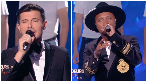 En effet, les deux artistes ont souhaité, ensemble, revisiter une chanson phare du catalogue riche en tubes de Jean-Jacques Goldman. Et pas n'importe laquelle ! En cette fin d'année 2021, c'est "Je te donne", un hymne au partage et à la célébration des différences que Vincent Niclo et Soprano ont entonné avec puissance hier soir sur France 3, entourés des choeurs de l'Académie internationale de comédie musicale. Tour à tour, les deux chanteurs se sont renvoyés le texte mythique, en anglais et en français, interprété à l'origine par Jean-Jacques Goldman et Michael Jones en 1985, avant d'unir leurs voix sur le refrain fédérateur que tout le monde connaît par coeur : « Je te donne toutes mes différences / Tous ces défauts qui sont autant de chance / On sera jamais des standards, des gens bien comme il faut / Je te donne ce que j'ai, ce que je vaux ». Une relecture portée par les voix intenses des deux ténors et sublimée par les choeurs derrière eux - et un solo de guitare électrique - qui a sans aucun doute fait vibrer les téléspectateurs devant leur télévision !