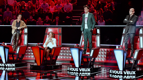 Et ce ne sont pas les seules nouveautés que nous réservent cette 7ème saison. Si Nikos Aliagas reste le maître des lieux, on retrouve dans l'un des quatre fauteuils rouges un nouveau venu dans la galaxie "The Voice" : Pascal Obispo ! « Expérience, crédibilité, complicité » : à défaut d'attirer un public jeune comme M. Pokora, l'artiste de 52 ans est parfaitement légitime dans son rôle de coach. Et comme un poisson dans l'eau, aux côtés de ses amis de longue date Zazie et Florent Pagny ! C'est d'ailleurs avec "Chanter" que les quatre artistes, avec Mika, font leur entrée sur le plateau pour une collégiale forcément nostalgique... dont le lancement a dû être répété deux fois en raison d'une jolie bourde de Nikos Aliagas, qui annonce que cette 7ème saison « ne ressemblera à... rien ». Hilarité dans le public, fous rires parmi les coachs. L'ambiance est décontractée ! Et malgré un tournage qui s'éternise tard dans la nuit, la fine équipe déborde d'énergie. Entre deux auditions à l'aveugle, ça se chambre, se moque des chaussettes de Mika, improvise des imitations de vieillards et bizute en bonne et due forme le petit nouveau. Qui ne manque pas de répondant ! Ni d'humour. Pour patienter pendant une pause, Pascal Obispo se transforme même en commentateur du match France-Allemagne dont il suit le déroulé en direct sur son smartphone. Nouvelles salves de rires dans la salle. Le public est conquis.