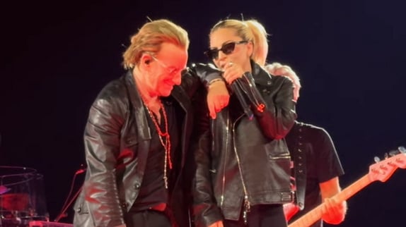 Chaussant des lunettes de soleil tout comme Bono, Lady Gaga a donc donné de la voix sur ce titre paru en 1988 mais aussi sur le tube "I Still Haven't Found What I'm Looking For", repris en choeur avec la foule. Entre les deux titres, Bono et Lady Gaga ont également entonné "Shallow", avec le rockeur irlandais à la place de Bradley Cooper. Une performance complice et puissante, entonnée avec les 17.500 spectateurs de Las Vegas. Après ce duo sur "Shallow", Lady Gaga a lancé avec humour à U2 : « J'étais dans le désert et j'ai couru jusqu'à vous les gars ».