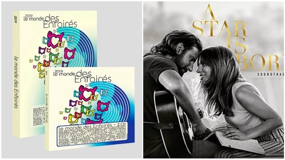 Bonne nouvelle : les Enfoirés, entrés en pole position en réalisant le meilleur démarrage de l'année, sont toujours numéro un des ventes cette semaine. Le CD/DVD "Le monde des Enfoirés" garde donc la tête avec plus de 37.800 achats, malgré une chute logique de 72%. Pour rappel, 1 vente équivaut à 17 repas distribués par les Restos du Coeur. Sur la deuxième marche, la BO du film "A Star Is Born" gagne une place, alors que les tubes "Shallow" et "Always Remember Us This Way" continuent de cartonner. L'album emmené par Lady Gaga séduit encore 6.900 fidèles (-11%), pour un total de près de 170.000 ventes pures (sans compter le streaming). Ce sont deux rangs de plus pour Queen et la compilation "The Platinum Collection - Greatest Hits I, II & III", troisièmes pour 5.400 exemplaires écoulés (-17%) tandis que Kendji Girac reste stable avec "Amigo", quatrième grâce à 5.300 ventes (-23%). De son côté, Angèle grimpe d'un étage avec "Brol", cinquième, qui enregistre 4.500 achats supplémentaires, soit une baisse de 17%.