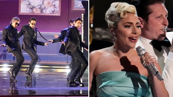 Si BTS n'a toujours pas réalisé son rêve de remporter un Grammy malgré sa nomination, le groupe sud-coréen de tous les records sait assurément faire le show. Impeccables dans leurs costumes Louis Vuitton et avec les cheveux bien lissés, Jin, Suga, J-Hope, RM, Jimin, V et Jungkook ont, après une introduction très film d'espionnage, mis le feu aux Grammy Awards avec leur tube contagieux "Butter". Rien ne semblait aussi fluide que leurs mouvements de danse millimétrés et leur interlude spectaculaire, à base de gros riffs rocks et de cartes pour rappeler Vegas ! Un sans-faute, comme d'habitude.